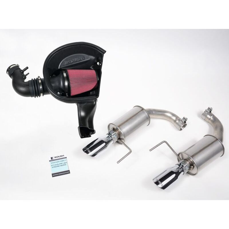The ROUSH Performance Level 2 Performance Pac for the Ti-VCT engine adds exceptional horsepower and torque torque to the stock Mustang V6 Fastback. Horsepower and torque improvements shown are typical. Individual results may vary. The included ROUSH cold air kit is fully tested and calibration certified to work seemlessly with our performance ECU reflash and adds a sporty sound to the 3.7L Ti-VCT engine. Our cold air kits are the best in the industry, designed and tooled in CAD to maximize available underhood space, and injection molded from premium automotive-grade materials for long life. A lower intake restriction over stock, ensures you will never need to upgrade your intake. The ROUSH premium 2.5" axle back exhaust system is built from high quality 304 grade stainless steel for long life and great sound. The system includes all hardware, and is fully tested to work as a system with the ROUSH cold air kit and ECU flash. Roush calibration engineers have extensive OEM calibration experience and sweat the details to ensure strong performance without sacrificing driveability. Hundreds of hours spent in the lab and on the dyno, testing and validating our calibrations, set our Performance Pacs apart from guesswork tuning. In addition to improved horsepower and torque, more aggressive throttle mapping and camshaft tuning lends a sporty feel right off idle to redline providing driveability gains throughout the entire power band. Roush Performance Pac calibrations are programmed easily into the factory ECU via industry standard J2534 reflash interfaces, with our free Roush Diagnostic Tool, (RDT), utility. An optional 3-year/36,000-mile limited powertrain warranty gives you confidence to crank up the power. An optional 3-year/36,000-mile limited powertrain warranty gives you confidence to crank up the power.